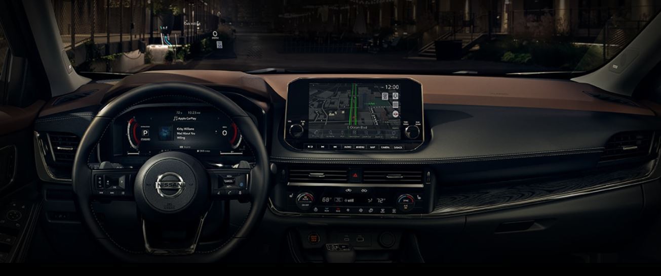 These driver assistance features include a 10.8 inch heads up display, a 12.3 inch "Digital Dashboard" gauge cluster and a floating whoping 9.0 inch touch screen display that is fully customizable. If you're not familiar with the Nissan heads up displays, they help reduce the stress and workload on the driver by displaying important vehicle information on directly onto the windshield. The Nissan heads up display is aimed at making it easier for the driver to pay attention to the road and their surroundings without having to fumble with the vehicle's dashboard.