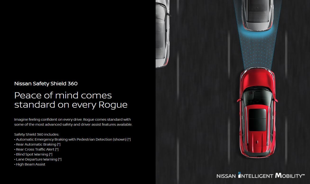 For the first time ever, the 2021 Nissan Rogue comes equipped standard with Nissan Safety Shield 360 across all trim levels! Additionally all 2021 Nissan Rogue trim levels come equipped with Nissan's Intelligent Driver Alertness technology and Rear Door Alert. With all of these incredible safety features that come standard on the 2021 Nissan Rogue, it's now the safest vehicle on the road!